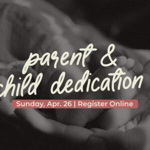 Sun., Apr. 26, in both 9:00 and 10:30 AM services. Parent/Child Dedication is a time when parents publicly commit to raise their child in the ways of the Lord. Parents are asked to attend a one-time Parent/Child Dedication Class on Wed., Apr. 15 at 5:15 PM in D104. Registration is required.